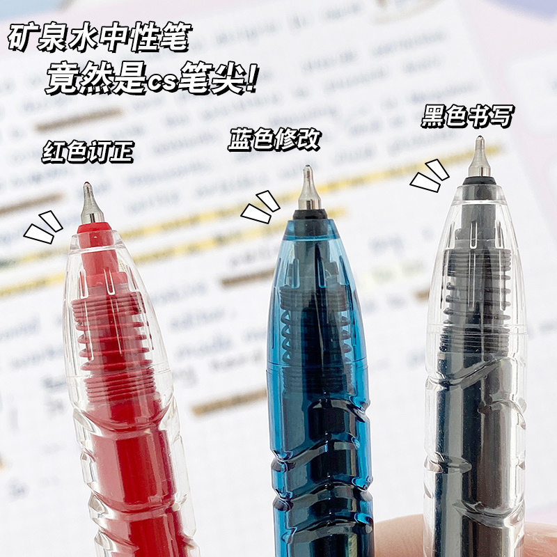 东米932宝特瓶刷题笔中性圆珠学生用黑笔红笔高颜值碳素速干顺滑日系黑CS笔芯按动0.5水性签字水笔ST考试旗舰