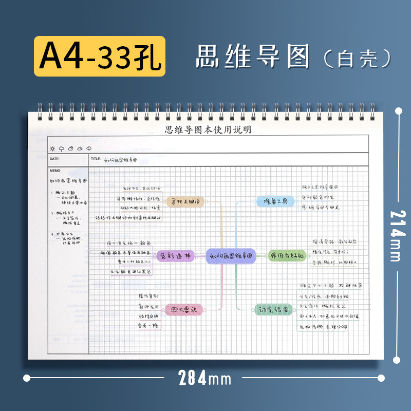 A4大号思维导图笔记本小学生语文高效学习法记忆本网格方格本加厚