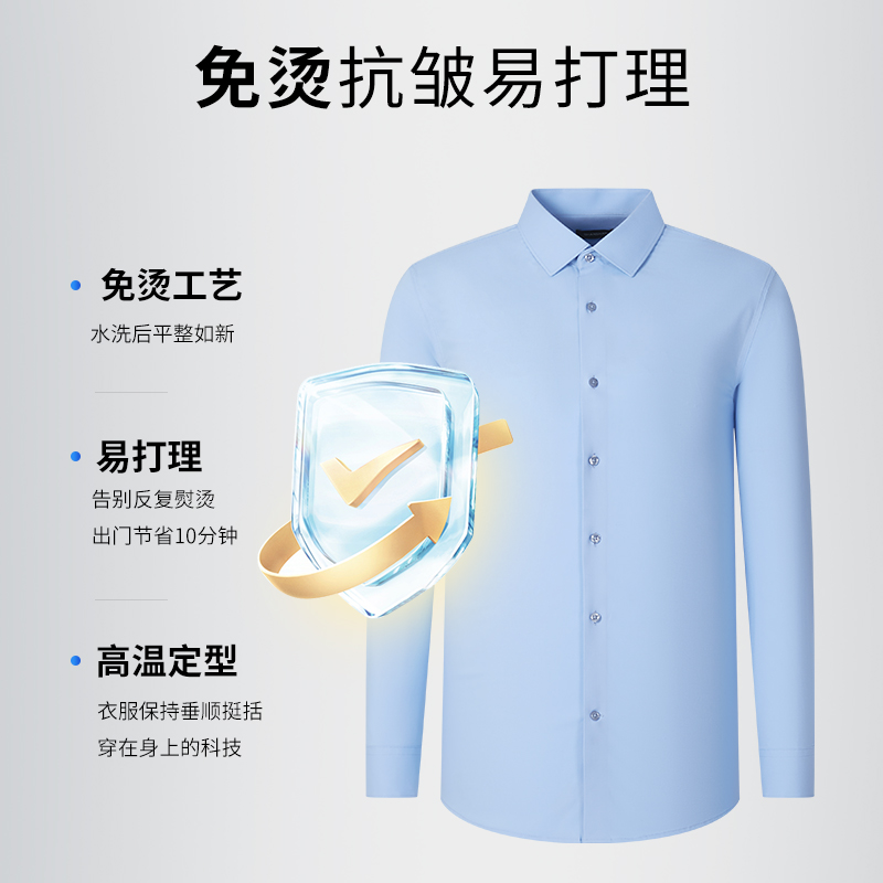 SHANSHNA杉杉官方蓝色衬衫男长袖2025秋季新款商务上衣休闲衬衣男