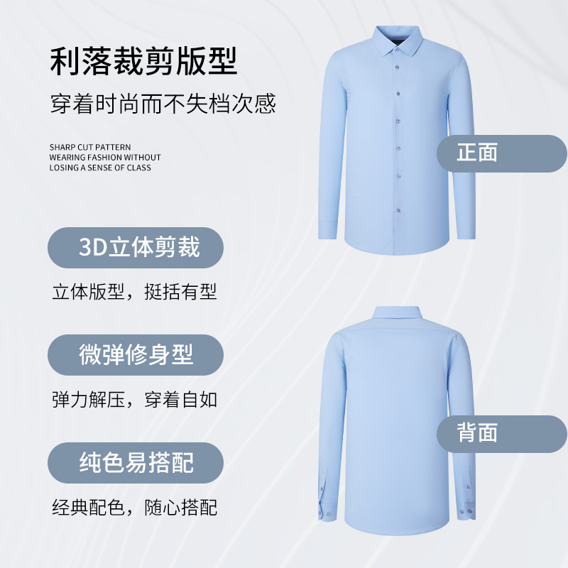 错位上袖 平圆方中男士白色长袖衬衫抗皱春夏新款商务正装衬衣男