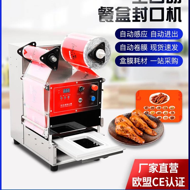 全自动小型封口机锁鲜盒商用快餐外送餐盒一次性塑料碗打包机封盒