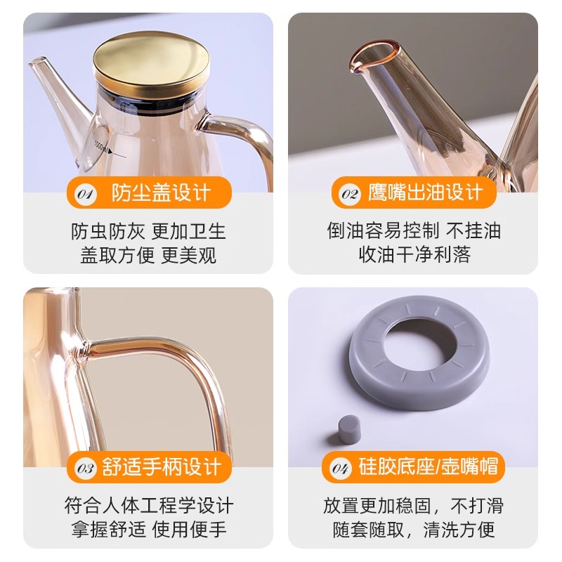 油壶厨房食品级家用不挂油油罐高硼硅玻璃防漏油油瓶酱油醋调料瓶