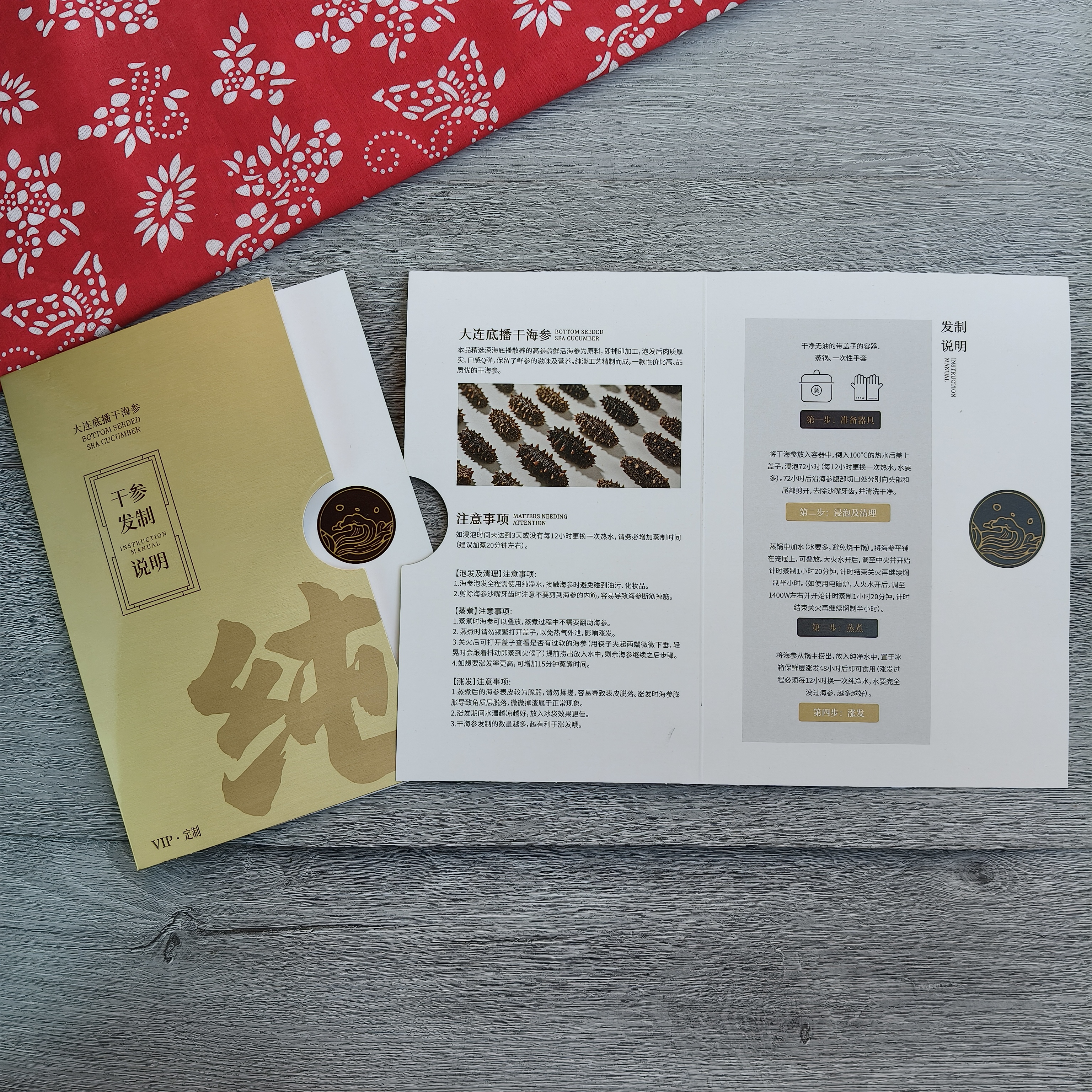 新款海参泡发说明书干海参发制方法国标海参食谱介绍二折页宣传页