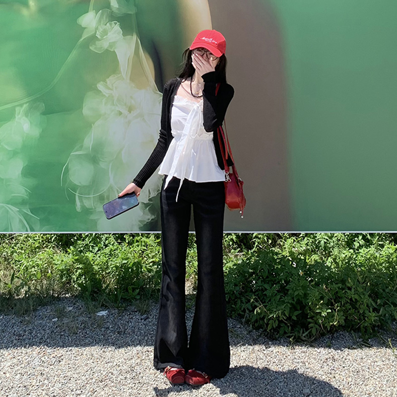 艾恩晟 牛仔裤女微喇叭黑灰色高弹性低腰 遮肉显瘦大长腿直筒