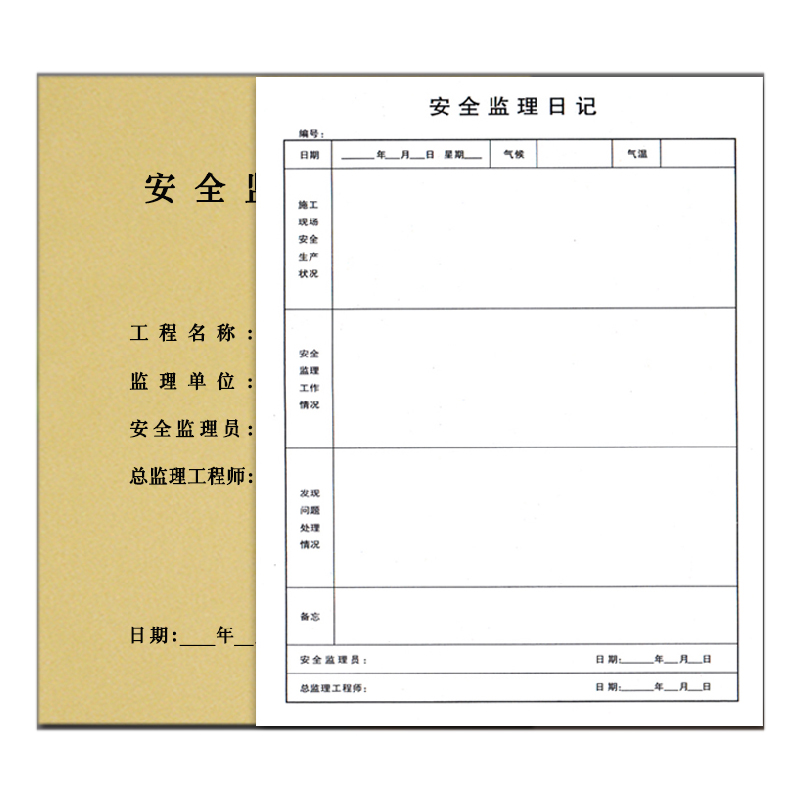 安全监理日记 A4 100页 安全监理日志 施工日记本 安全监理记录簿 记录本登记本 施工建筑记录本