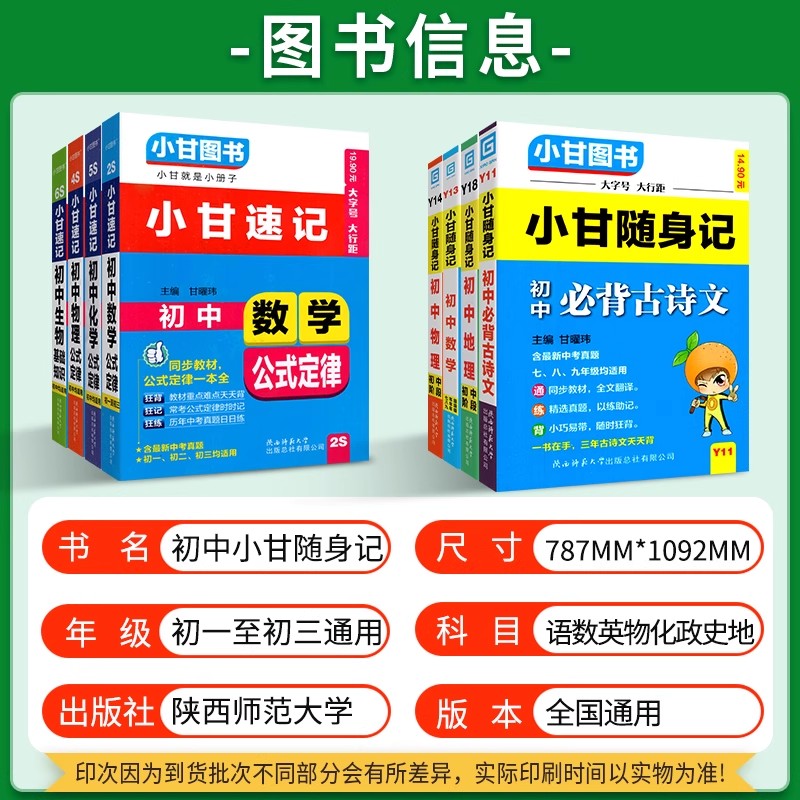 2025小甘随身记高中英语单词语文必背古诗文数学物理化学历史政治生物地理基础知识公式定律新教材全套资料口袋书小册子速记维克多