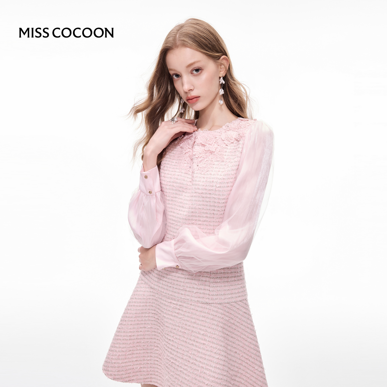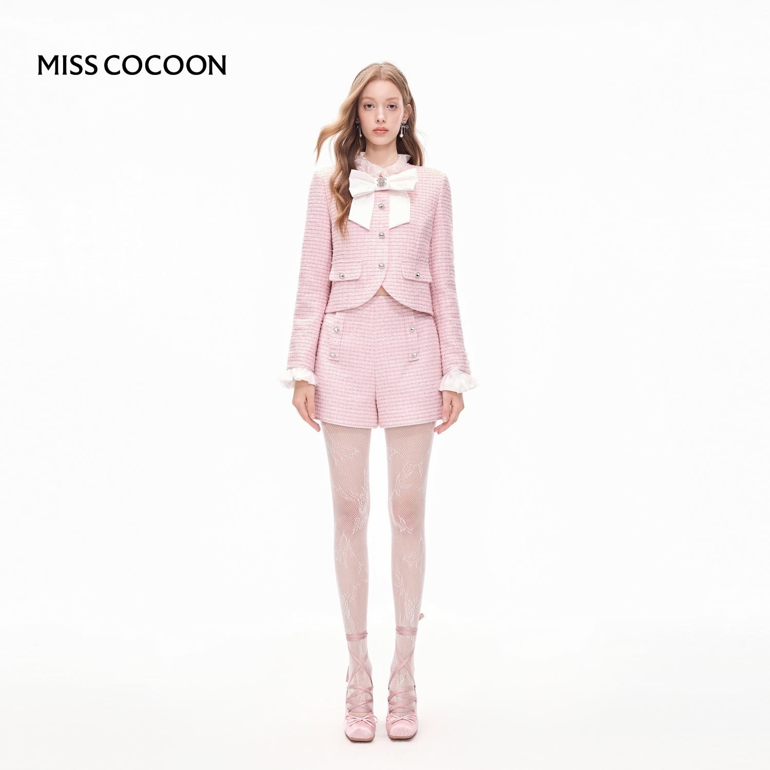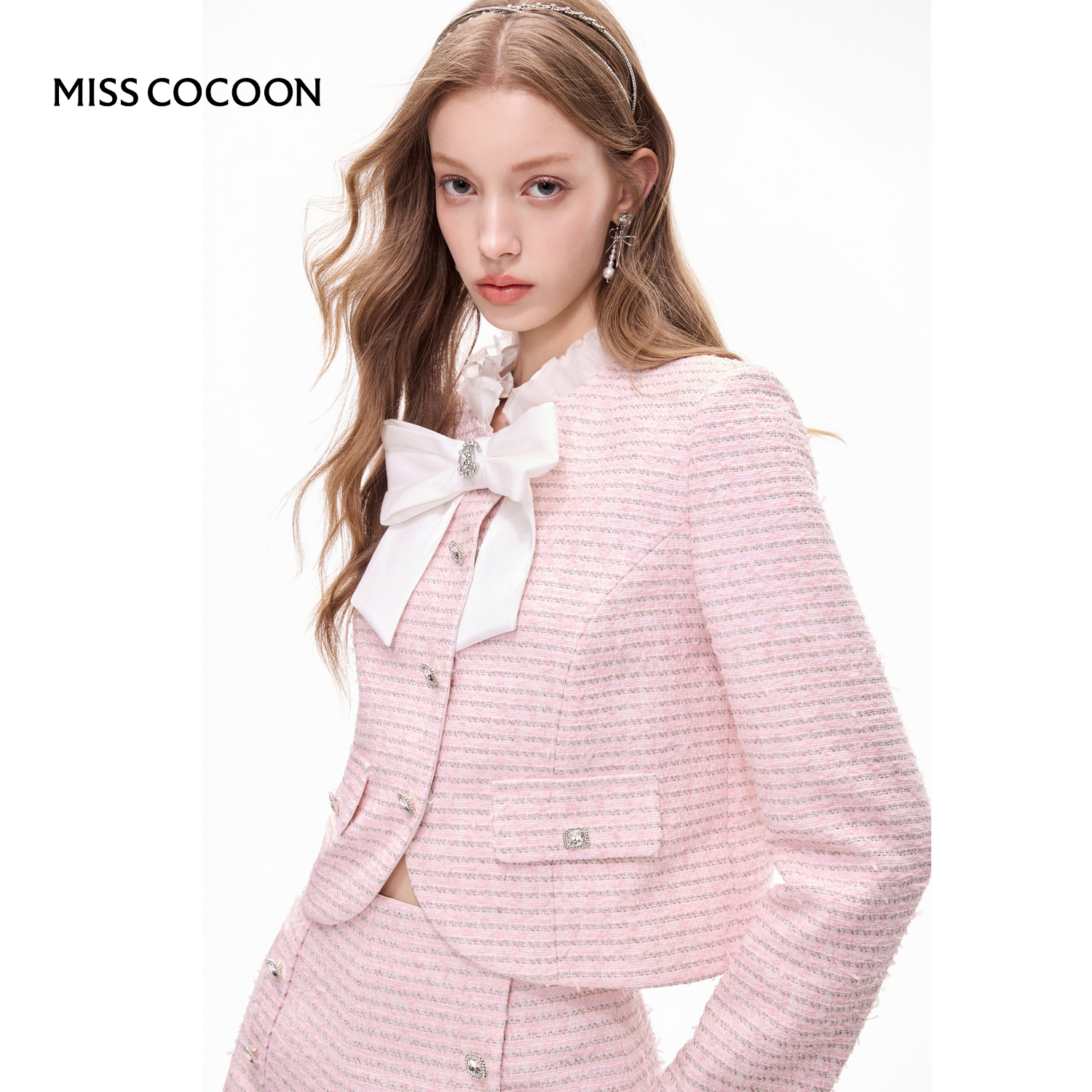 MISSCOCOON可可尼蝴蝶结粉色上衣女2025秋季新款千金小香风短外套