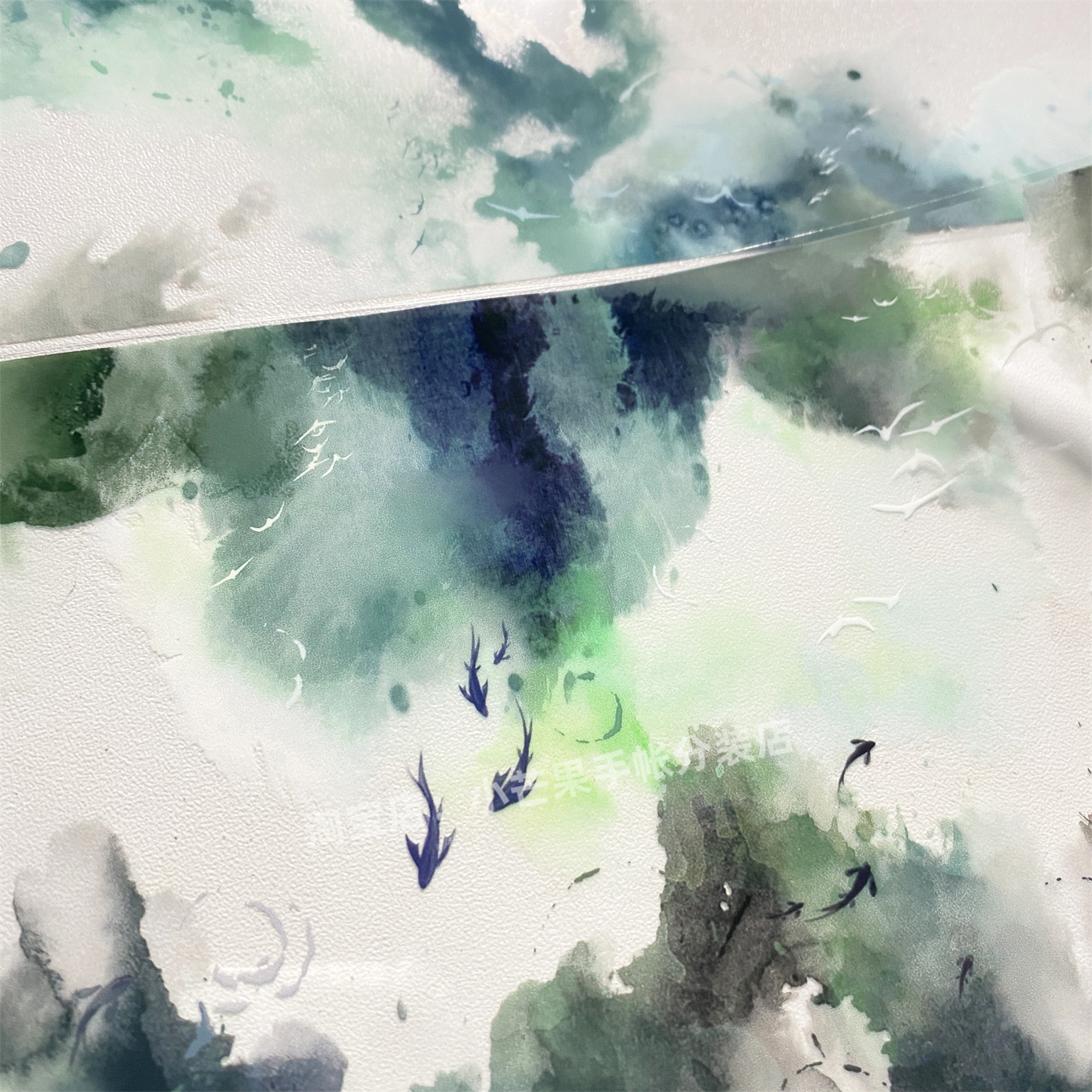 手帐分装墨染青韵zero水墨大背景鱼鸟胶带古风素材账流麻贴纸咕卡