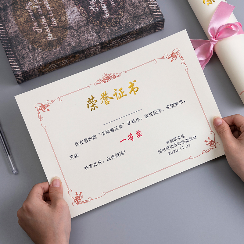 50张荣誉证书内芯烫金空白12k6K8k16k开可定制打印内页a4年底颁奖表彰优秀员工奖状纸加厚款学生创意企业