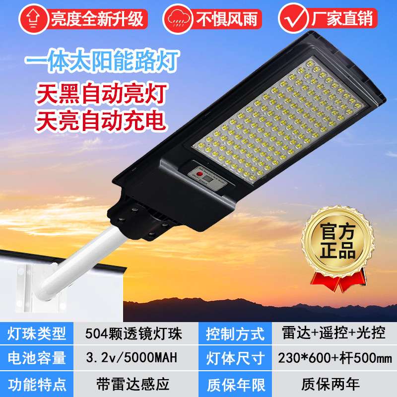 巜太阳能一体化路灯家用人体感应户外庭院灯天黑自动亮新农村照明