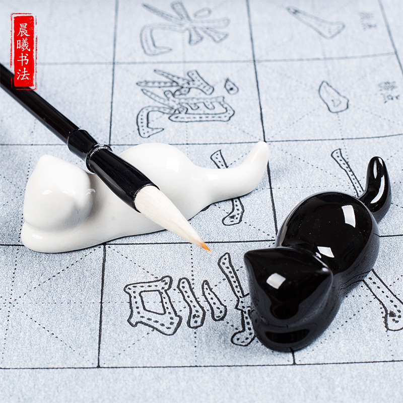 可爱创意摆件黑猫白猫陶瓷笔架笔搁毛笔笔架笔挂书法用品文房四宝