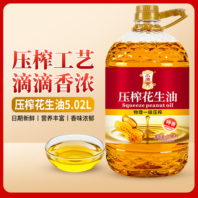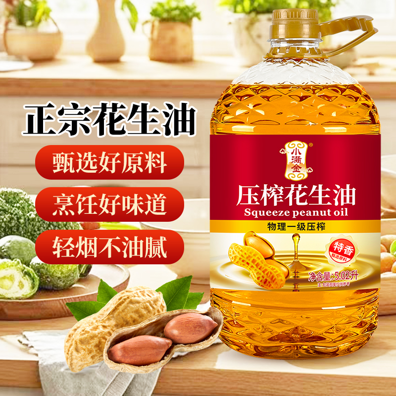 花生油一级压榨【国标】100%纯5.02L小满金特香食用油桶装炒菜油