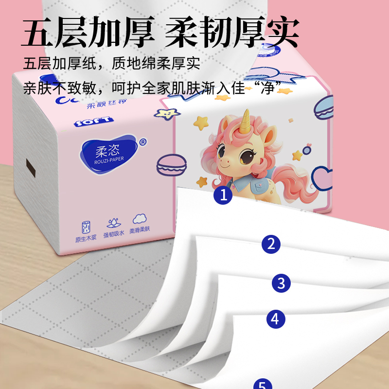 柔恣抽纸360张5层加厚家庭实惠装柔韧不易破卫生纸面巾纸餐巾纸