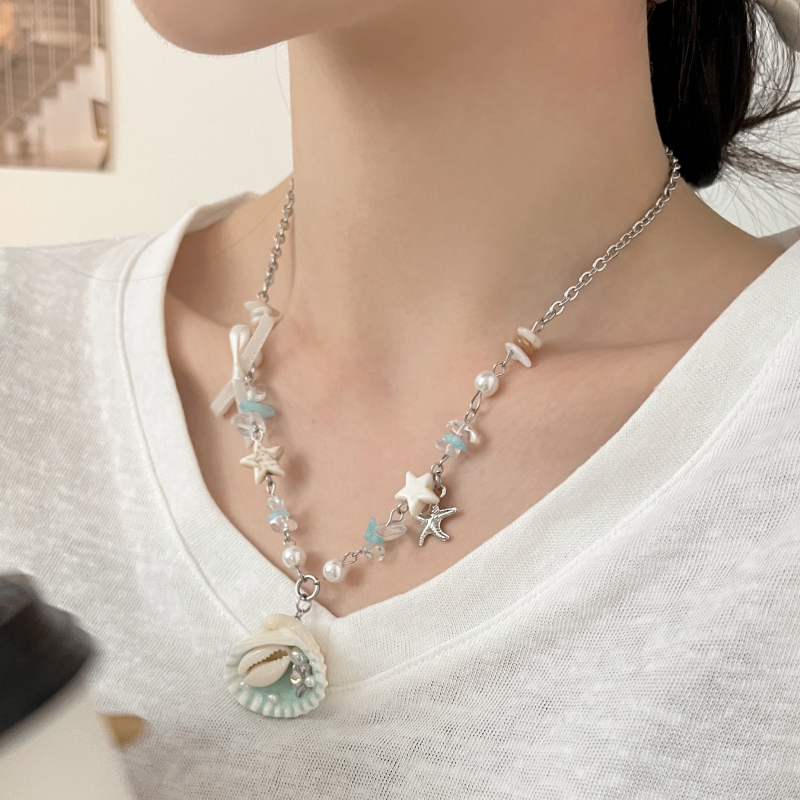 海边蓝色海星贝壳串珠项链女甜酷辣妹小众设计度假风配饰2025新款