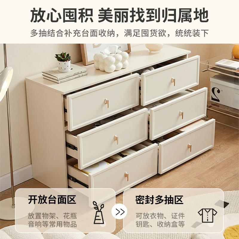 床笠奶油风斗柜卧室收纳柜床头储物柜客厅靠墙抽屉柜子简约现代五斗橱套装拉车饰品
