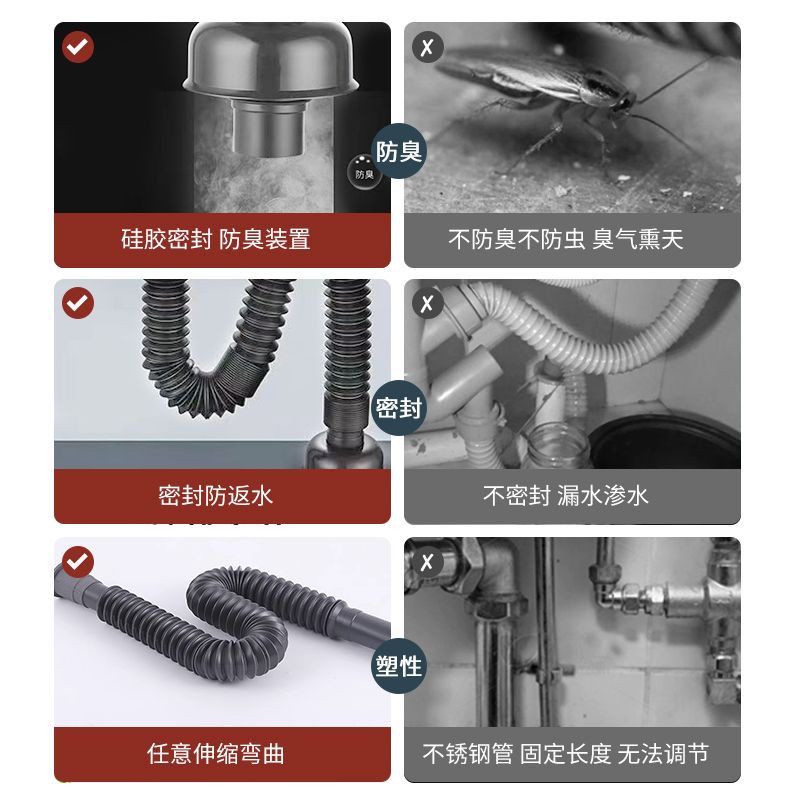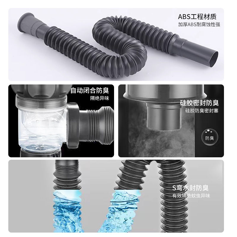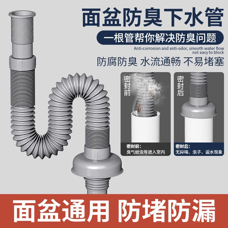可伸缩水槽面盆排水管软管洗脸盆池接口下面通用防臭管道密封钢丝