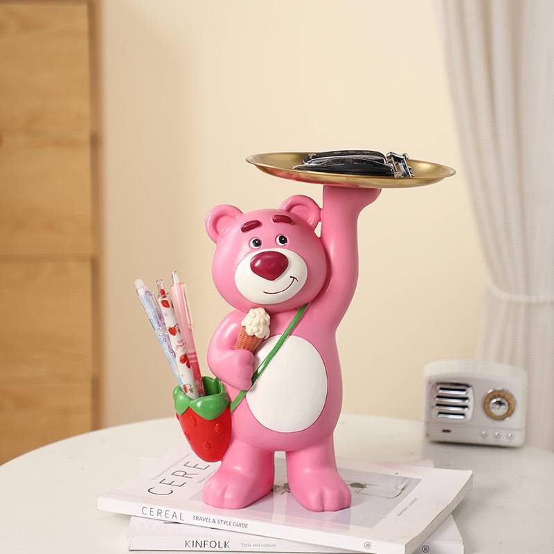 创意玫瑰熊钥匙收纳摆件家居进门入户玄关茶几吧台办公桌面装饰品