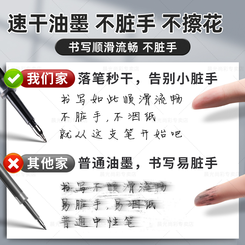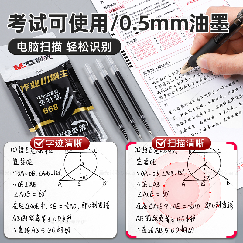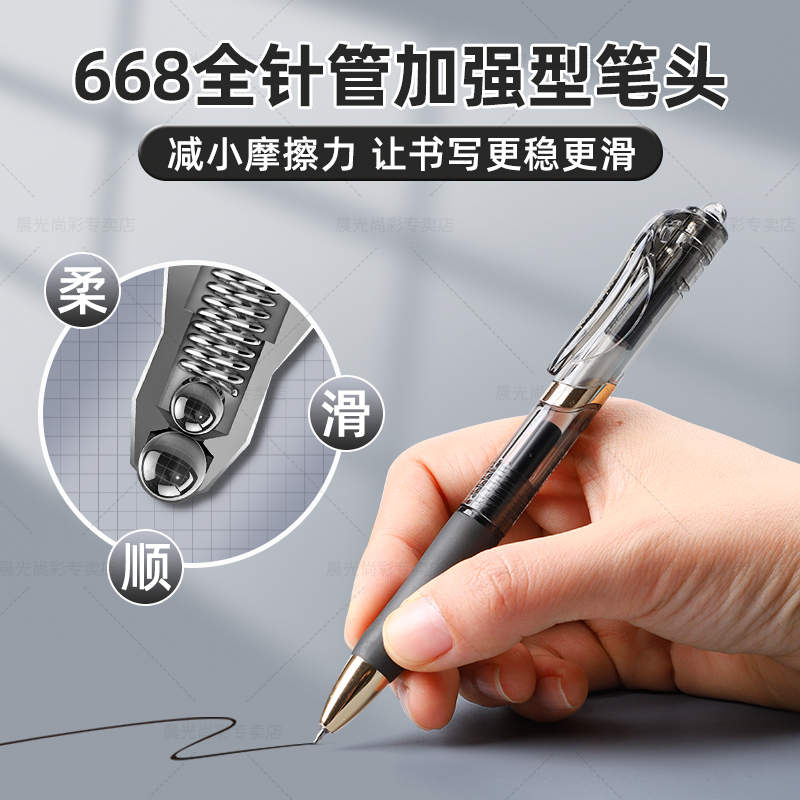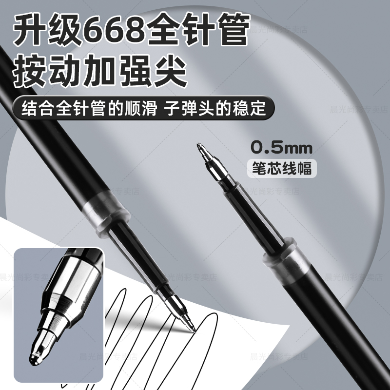 晨光st速干笔芯作业小霸王中性笔芯0.5按动黑色水笔芯碳素668加强全针管子弹头st笔头大容量学生考试专用替芯