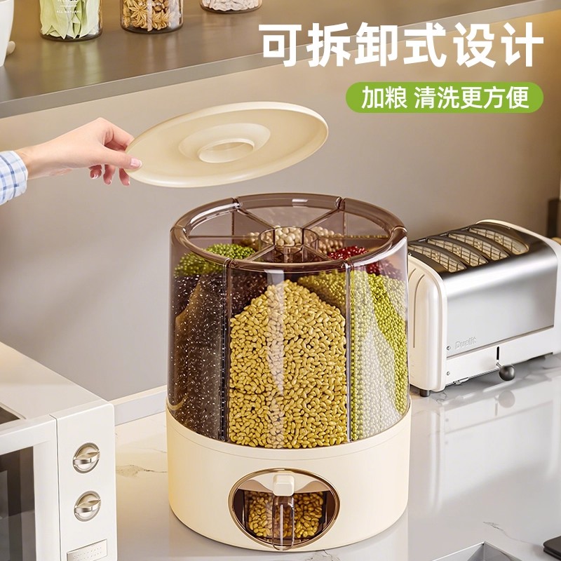 旋转五谷杂粮收纳盒家用分格收纳食品级米桶收纳神器密封防虫防潮