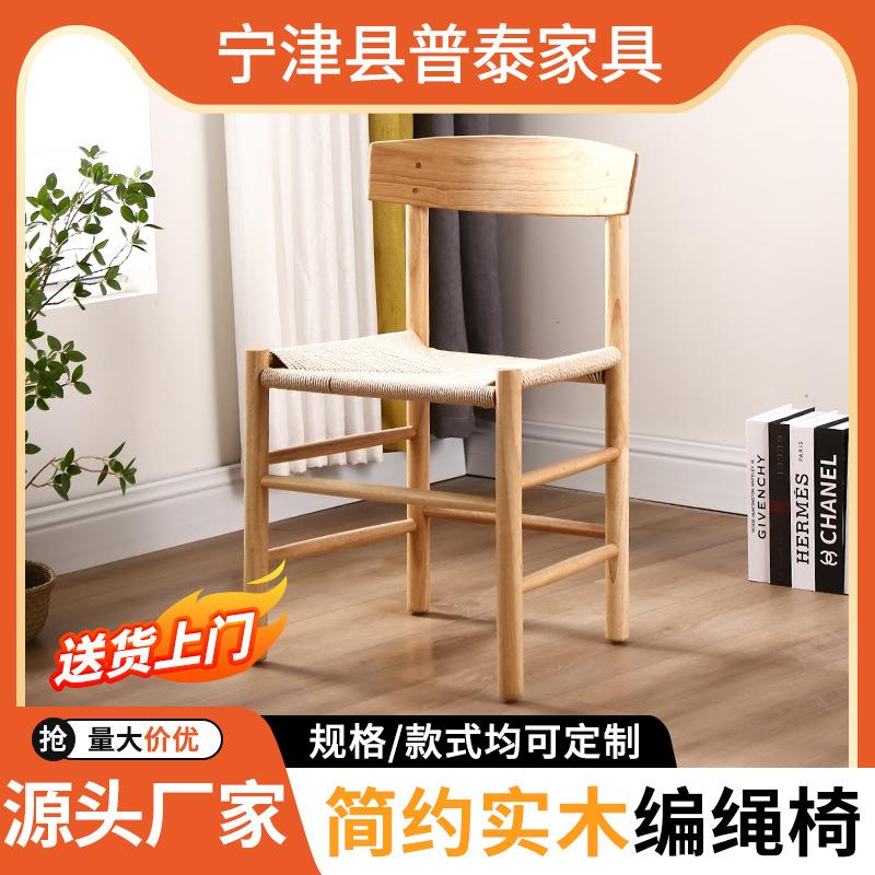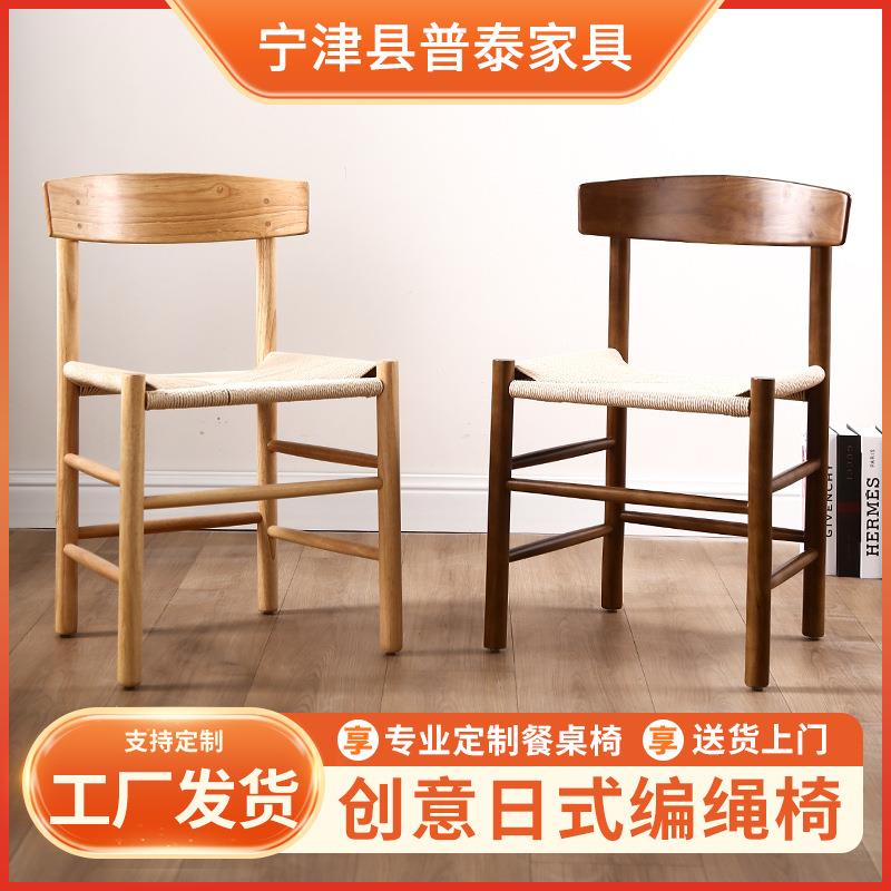 日子式简约网红古实木实木椅子椅餐椅餐厅灵家具休闲靠背椅编绳科复椅
