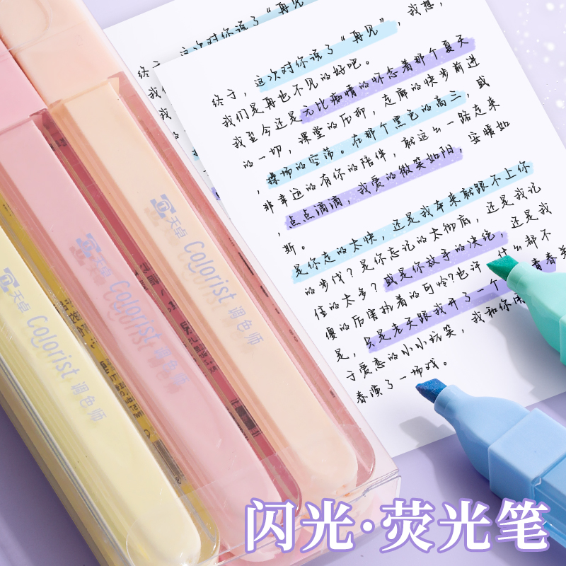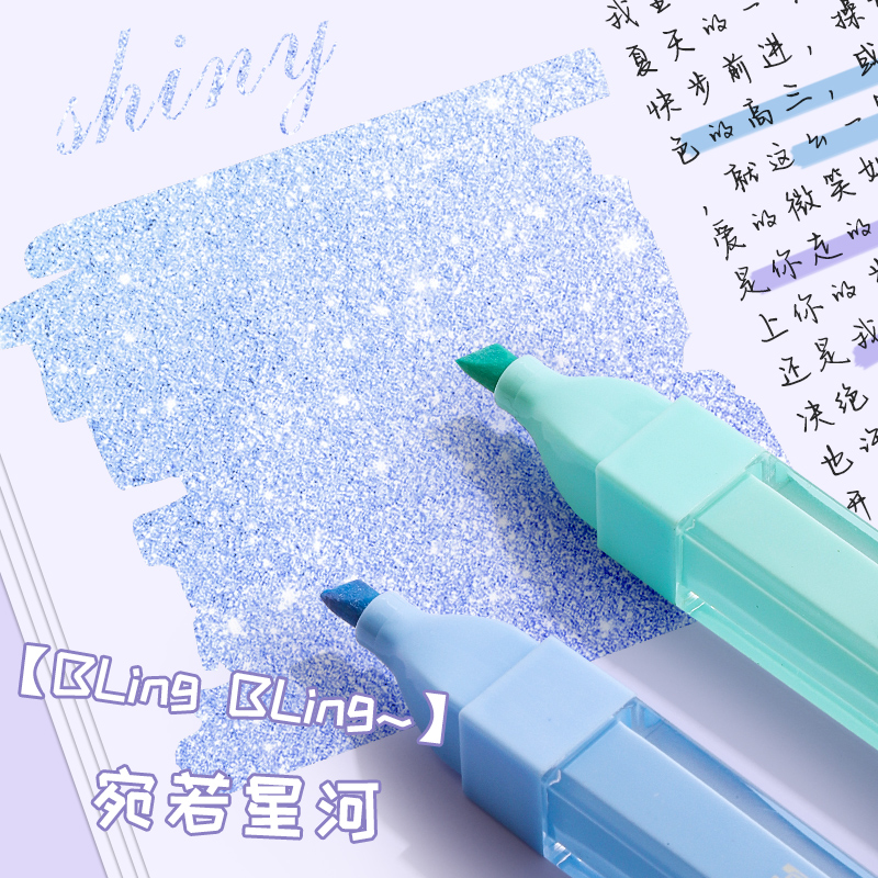 细闪荧光笔护眼色萤光笔高颜值闪光亮晶晶标记笔记号笔初中生做笔记荧光标记学生用彩笔初中小学生划重点彩笔