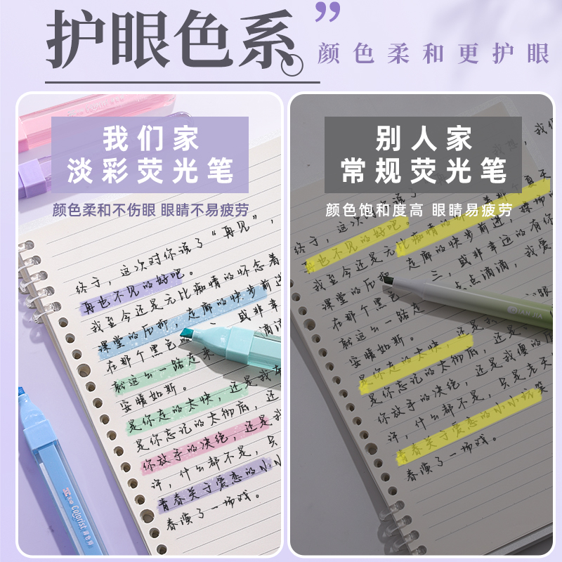三年二班护眼荧光笔高颜值荧光标记笔学生用多色记号笔彩色划重点手帐手账笔做笔记本马卡龙淡色萤光笔银光笔