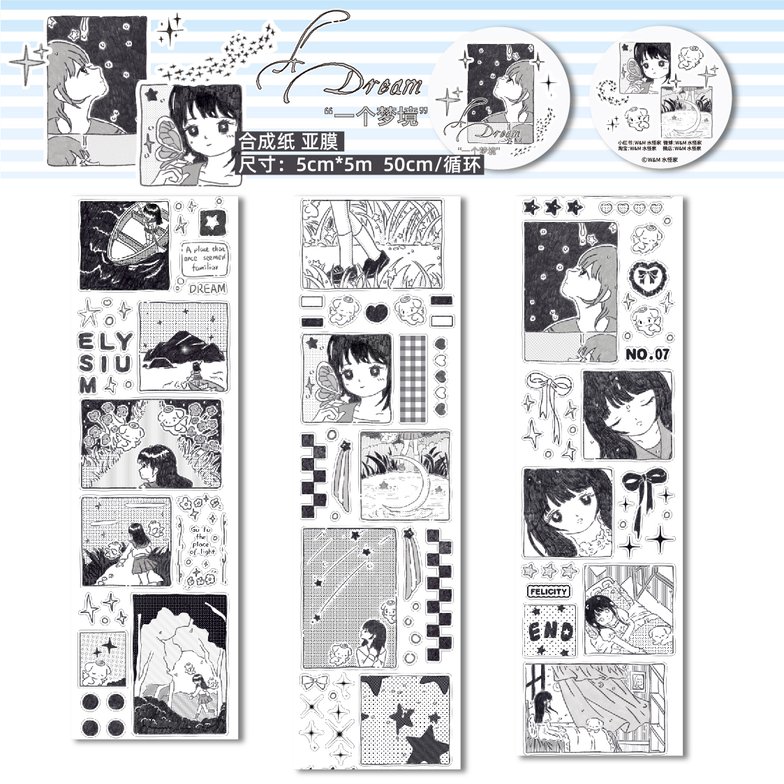 水怪家一个梦境贴纸卷原创故事型手帐拼贴人物装饰胶带带模切
