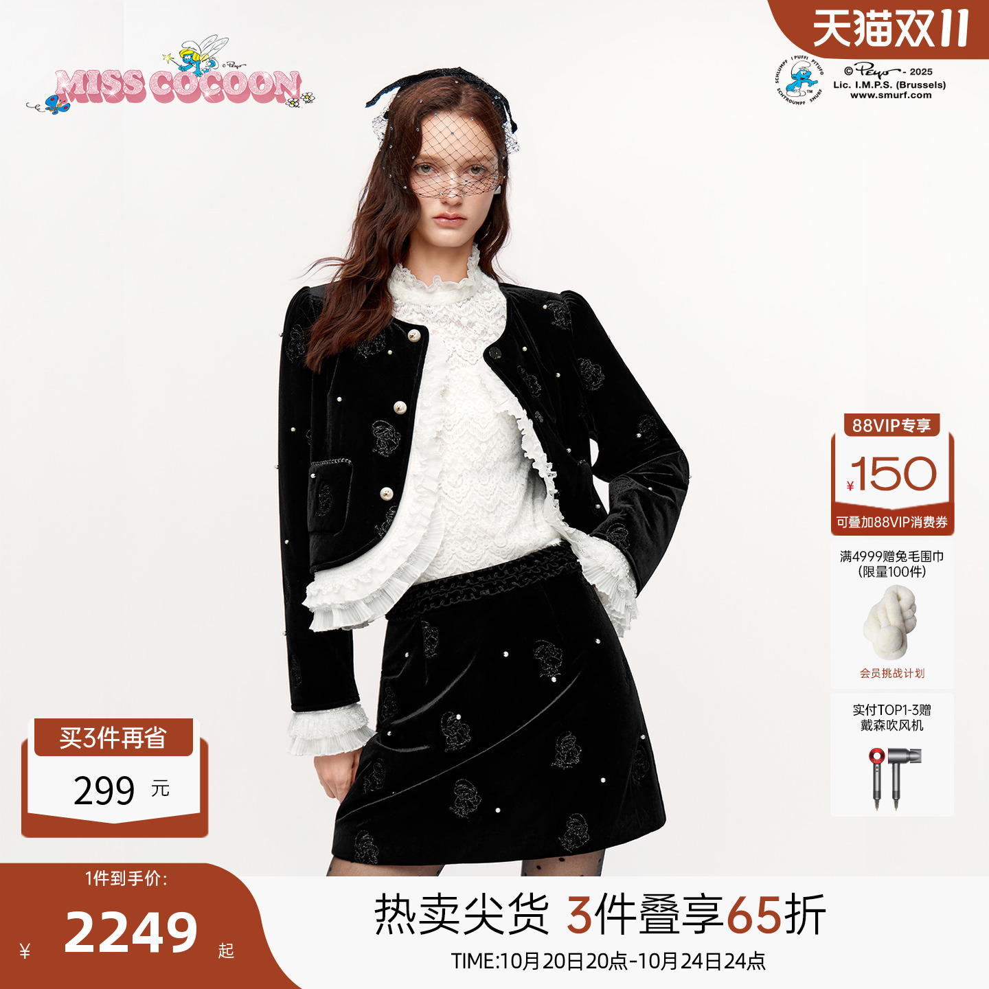MISSCOCOON可可尼蓝精灵联名套装女2025冬季新款千金风丝绒外套