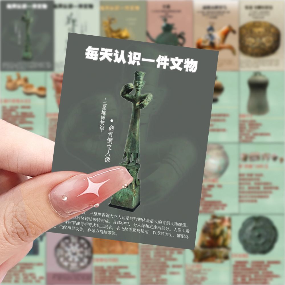 【大图释官方授权】126张每天认识一件文物学习手账古代青铜器三星堆面具diy自粘图案标签装饰防水立体贴纸画