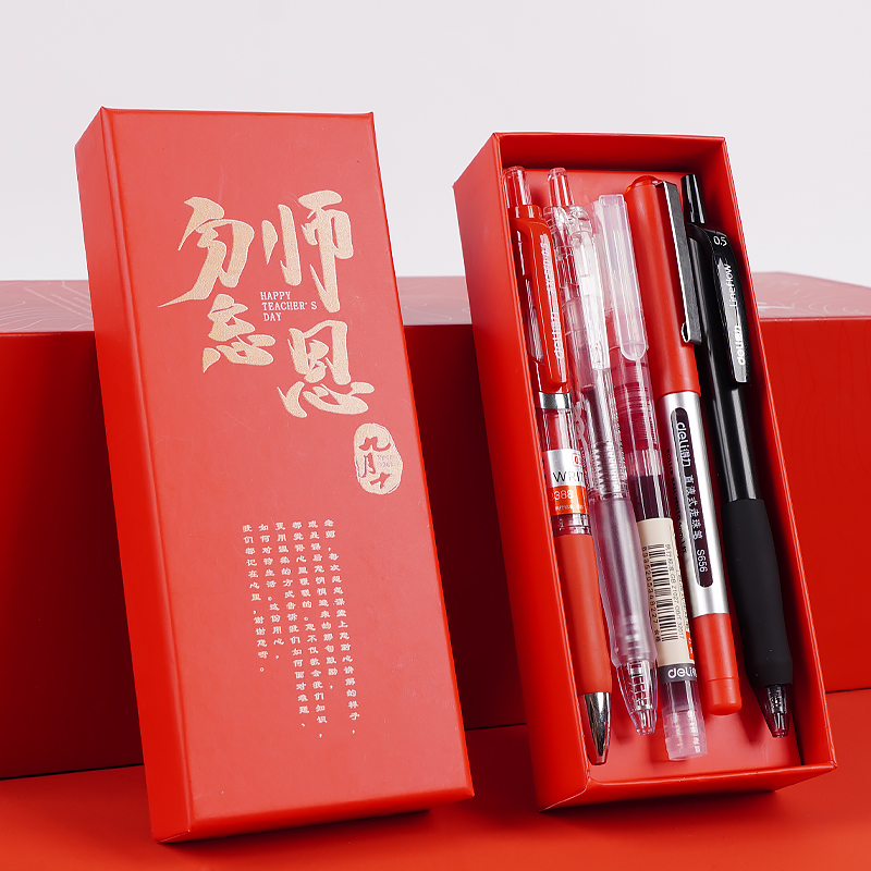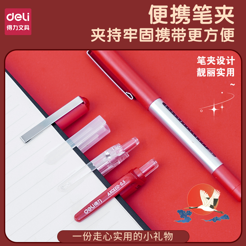 得力红笔套装老师礼物红色中性笔ins风高颜值女教师节礼盒装老师批改卷子作业按动顺滑速干学生送班主任礼物