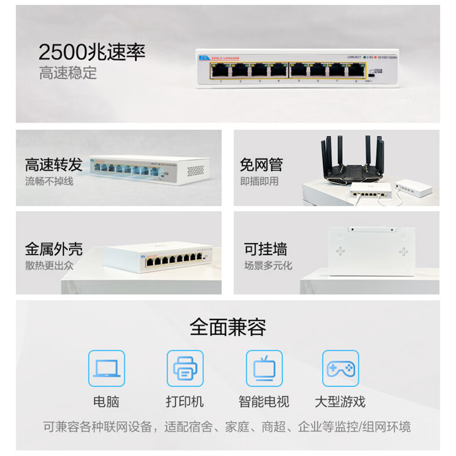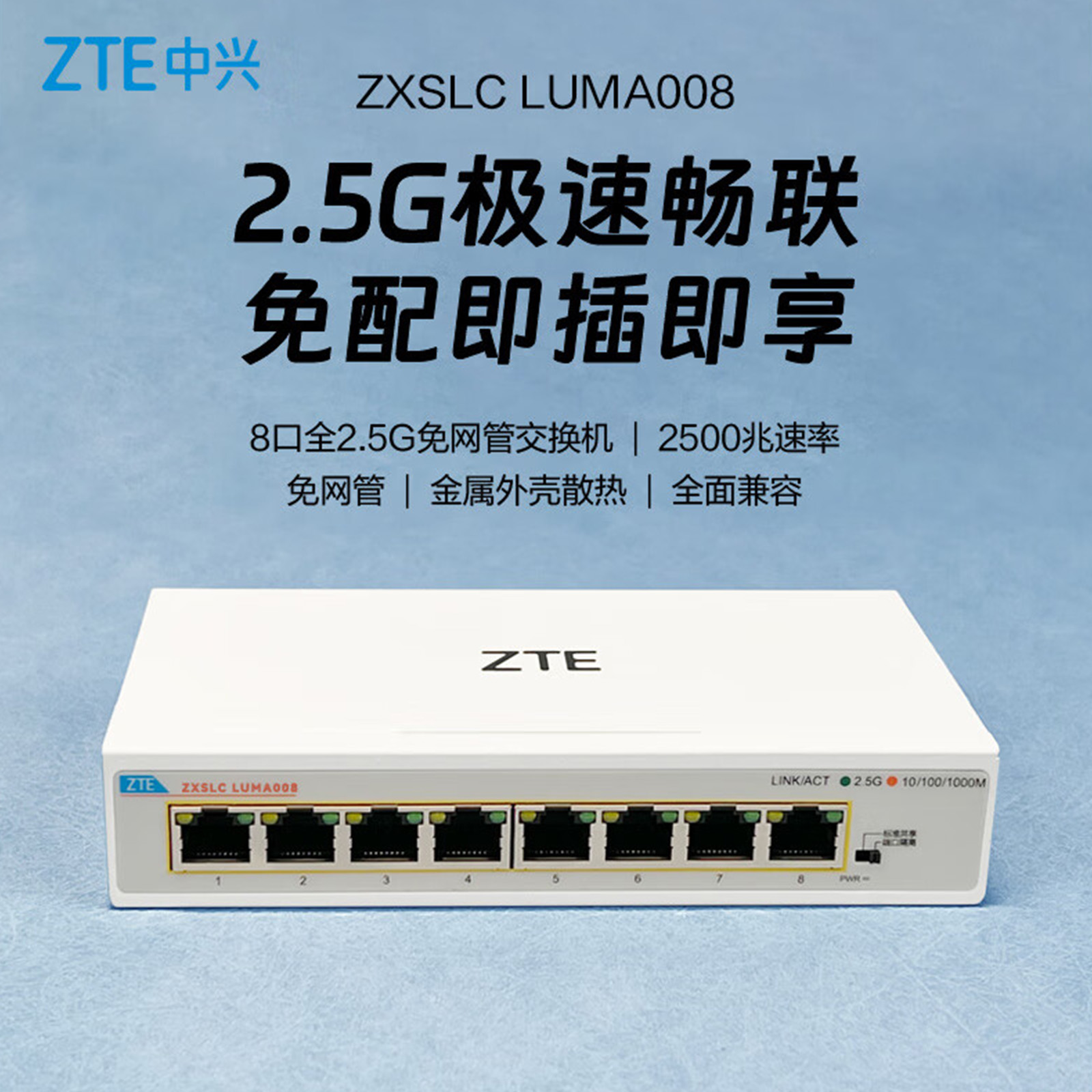 中兴(ZTE)8口全2.5G网口以太网交换机 企业级交换器 监控网络网线分线器 分流器 ZXSLC LUMA008