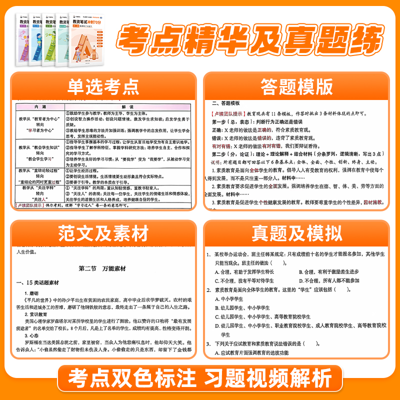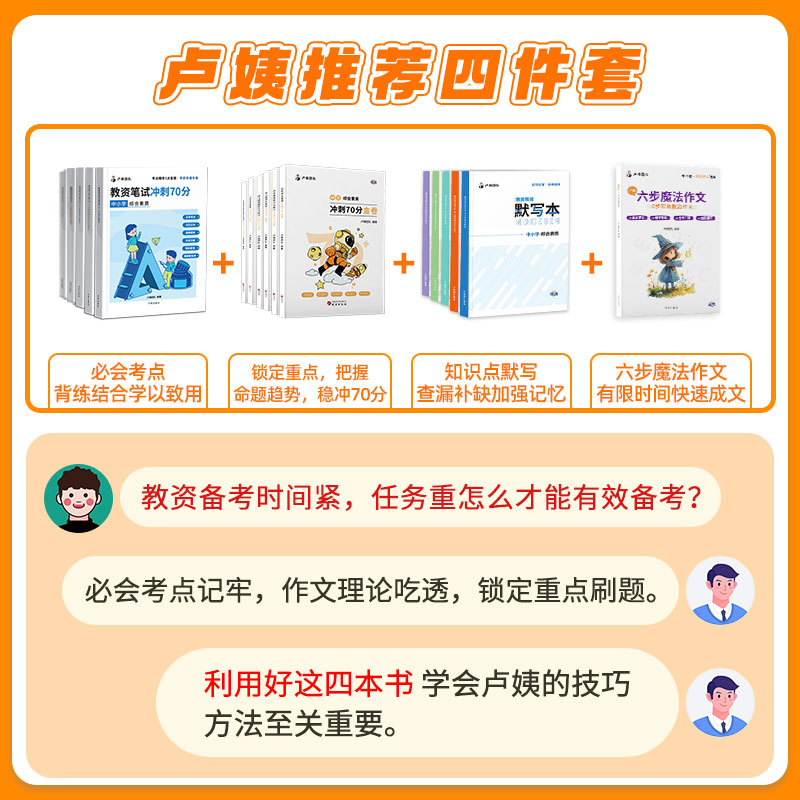 卢姨教资笔试2025下半年冲刺70分幼儿园小学中学初中教师资格证六步魔法作文书金卷真题背诵资料综合素质教育教学知识与能力默写本