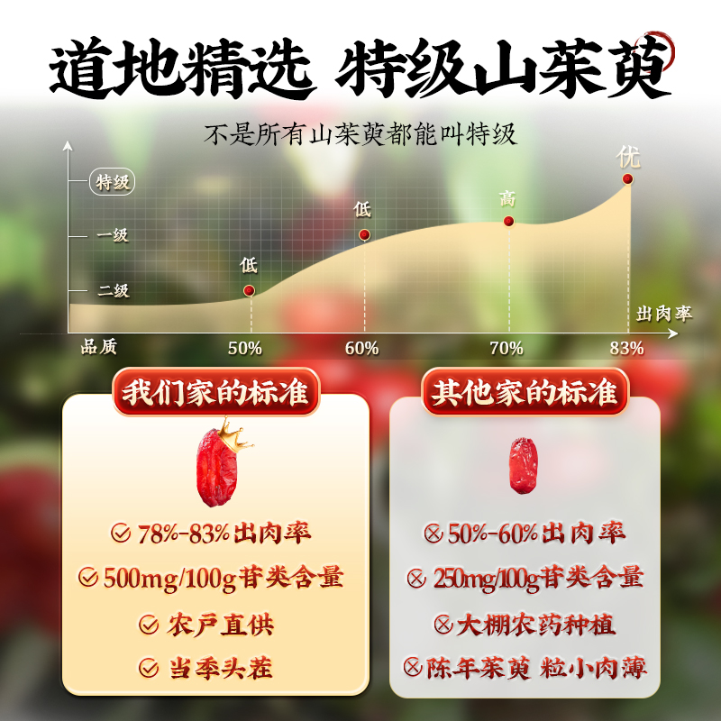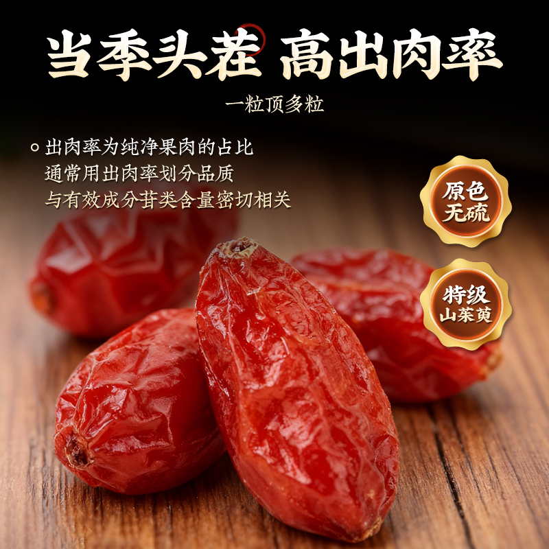 国药特级山茱萸无硫无核肉大野中生药材泡茶官方正品旗舰店搭当归