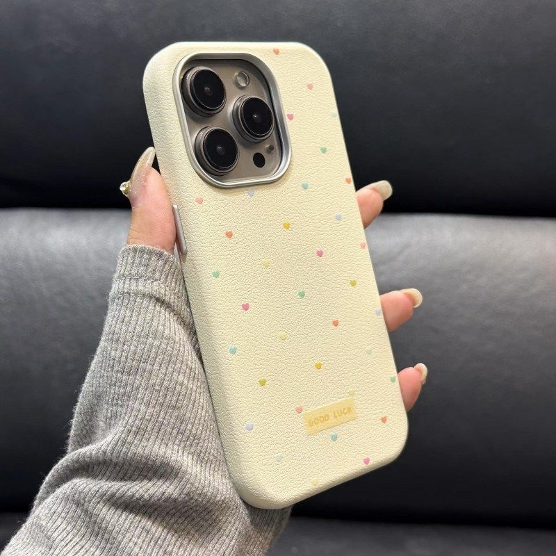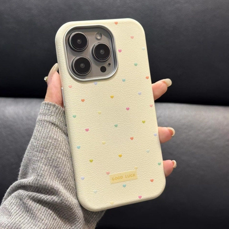韩风彩色爱心适用于苹果16pro手机壳15/14plus高级感iphone13/12皮纹金属框11promax防摔xs/xr新款xsmax软套