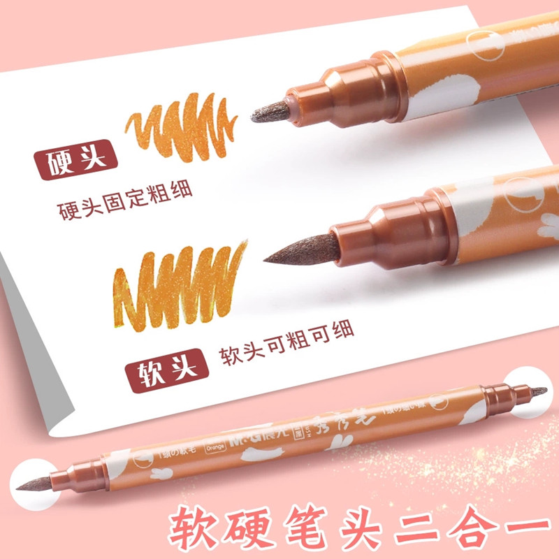 晨光6230水性小双头勾线笔极细0.8mm+粗5mm学生办公手账记号笔 标记笔防渗儿童绘画学习记号笔多材质书写文具