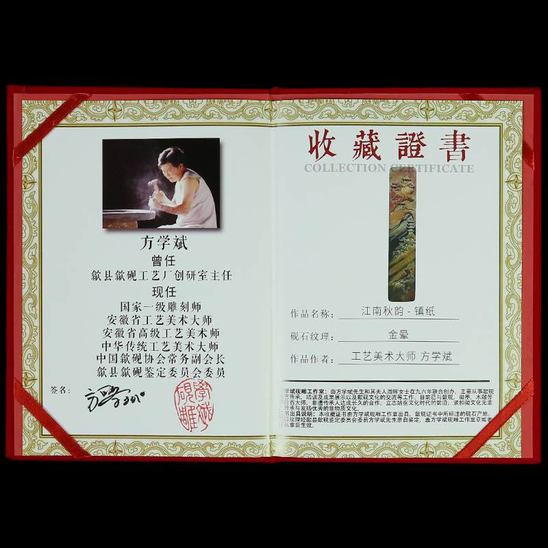 【孤品】赋比兴 国家非遗 方学斌镇尺作品 歙砚会长 镇尺书法专用 精品天然高档安徽老坑原石镇纸 文房四宝
