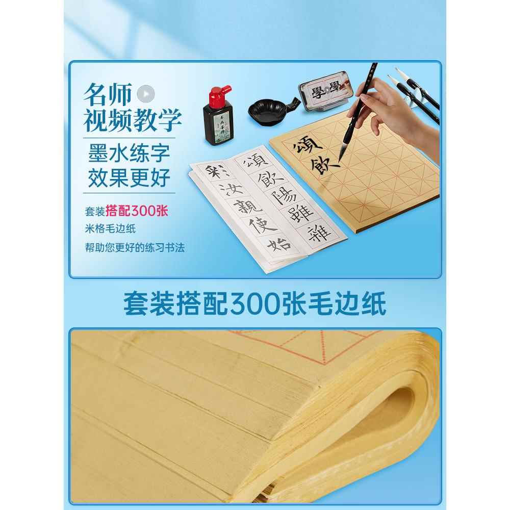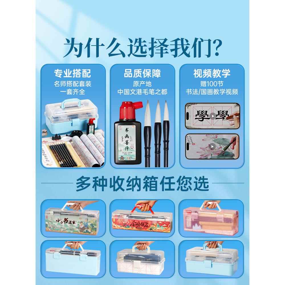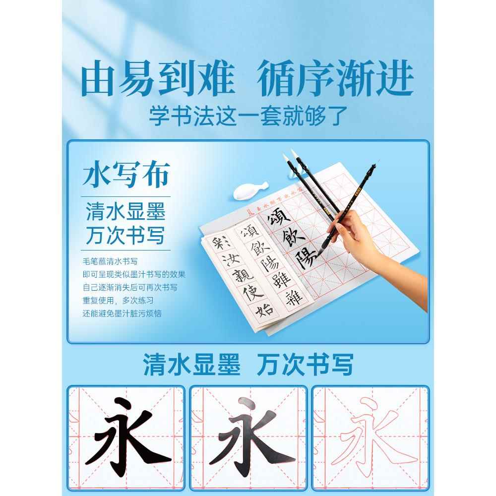 毛笔书法初学专用三年级小学生初学者套装儿童毛笔字入门练字练习水写布文房四宝笔墨纸砚全套软笔工具收纳盒
