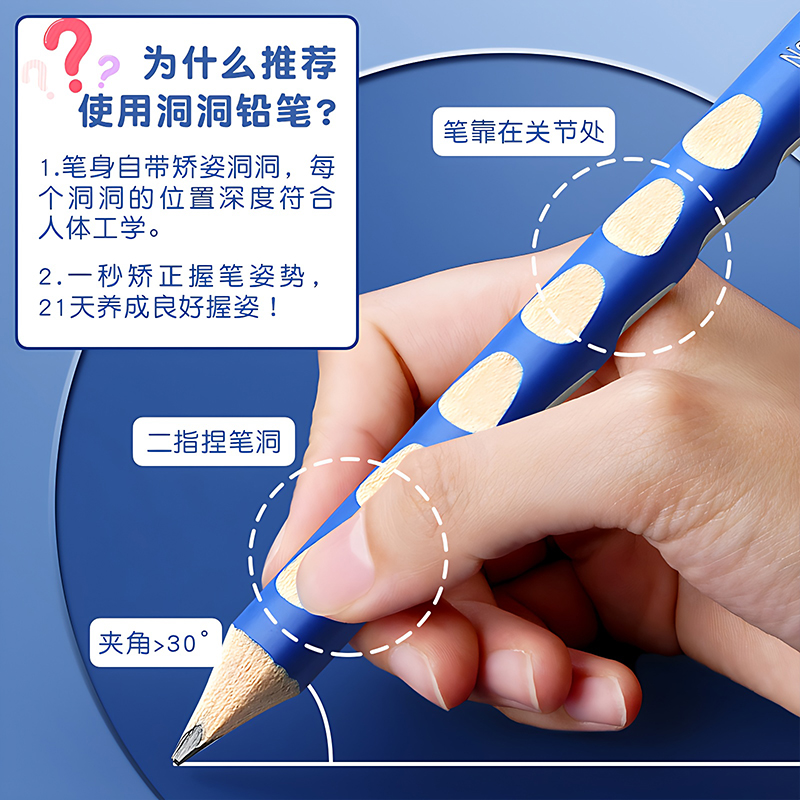 得力洞洞铅笔小学生专用无毒一年级幼儿园矫正握姿hb加粗2比b正姿粗杆初学者三角杆儿童写字练字考试用品文具