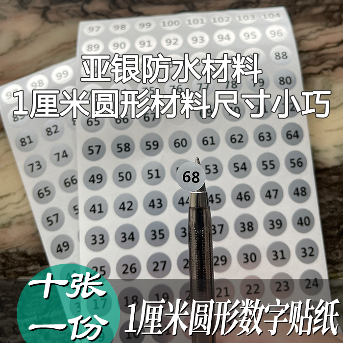 1厘米亚银圆形防水数字贴纸序号编码编号码流水自粘手工定制专用