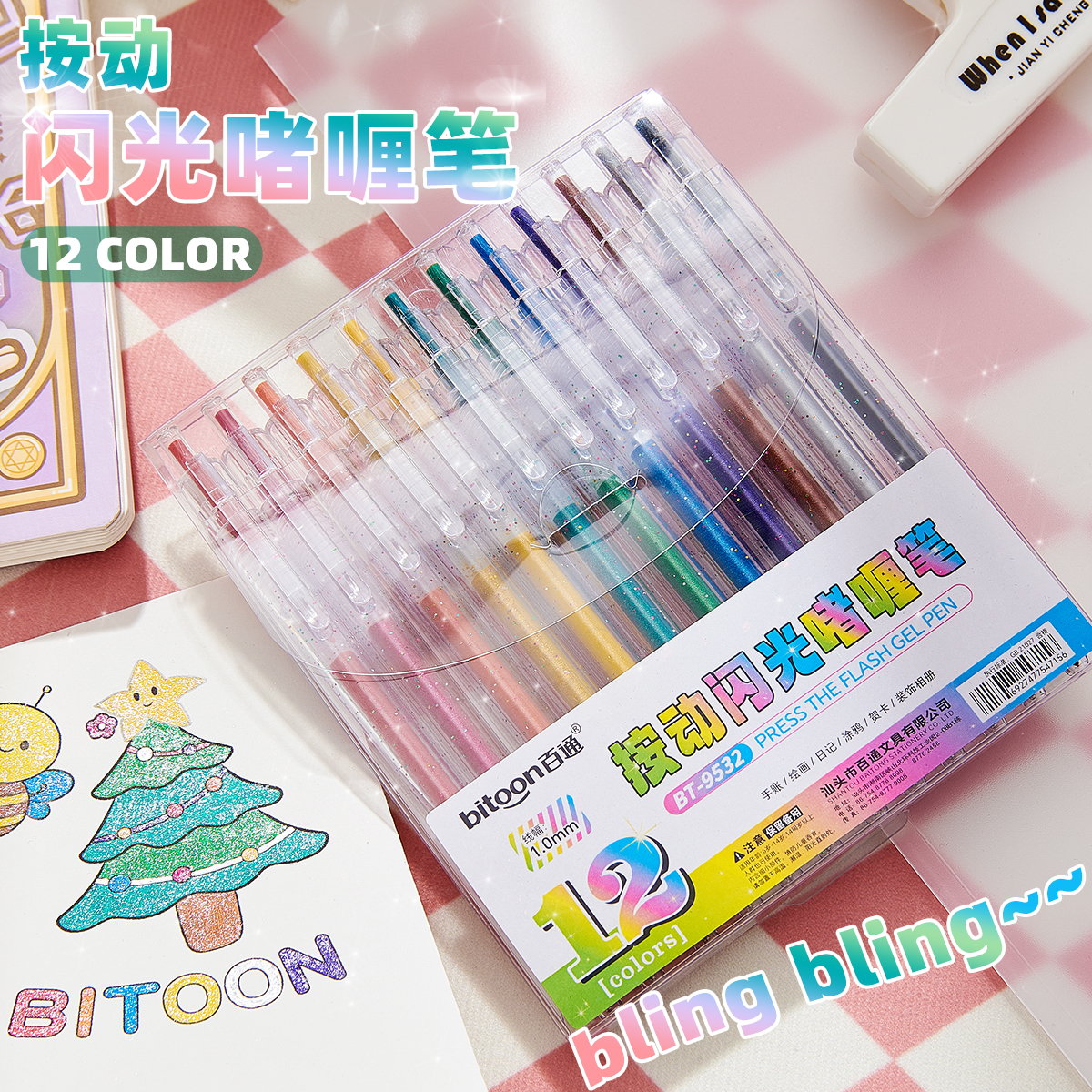 按动彩色闪光笔啫喱发光亮晶晶流沙笔银光变色做手账的手帐专用珠光标记儿童莹光做笔记闪亮金属轮廓闪粉