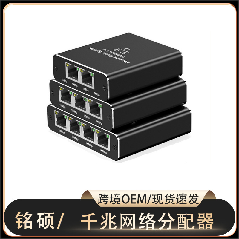 千兆网络接头分配器交换机RJ45网线1进2出拆分器同时上网接口连接