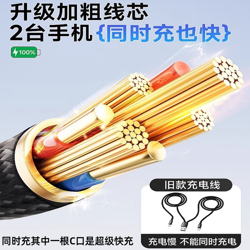 一拖二超级快充数据线二合一充电线加长2米闪充适用华为Typec苹果16安卓小米车载编织独立分线一分二同时充