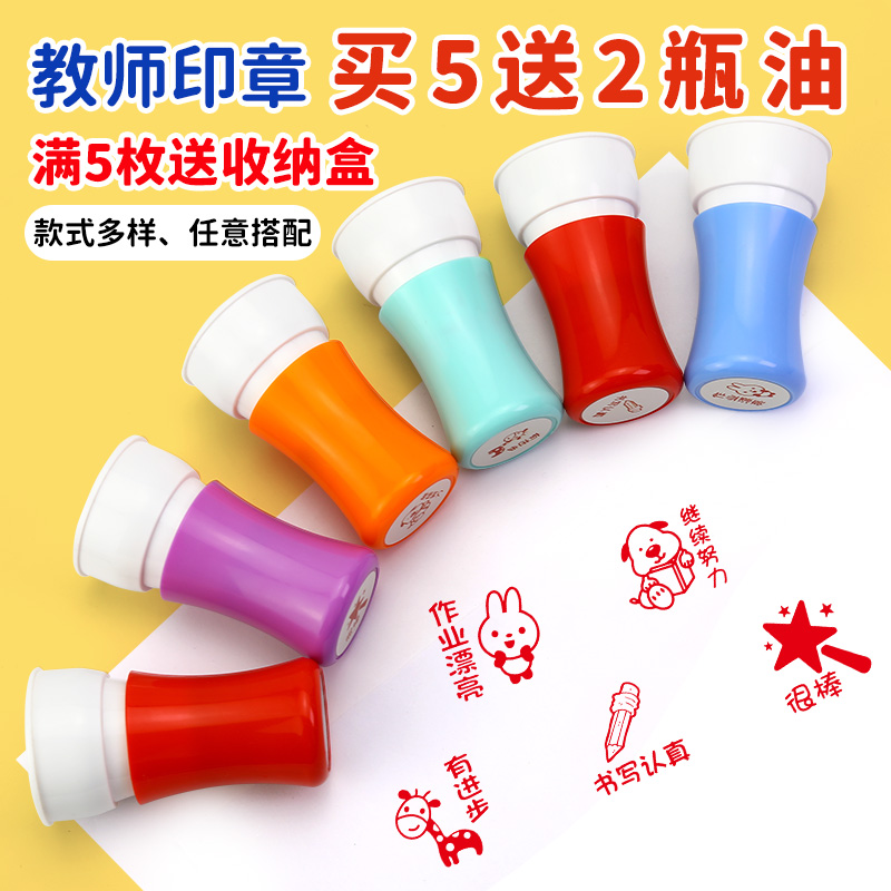 儿童奖励印章教师用幼儿园老师批改作业奖励盖章卡通图案表扬印章评语鼓励学生小红花套装可爱笑脸大母指印章