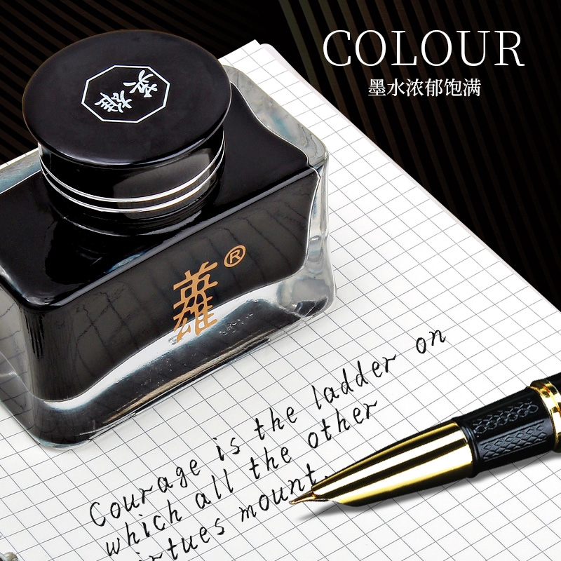 英雄牌钢笔墨水非碳素金笔墨囊60ml黑墨水颜料型高品质特黑不易堵笔速干防水不褪色成人练字书法官方旗舰店