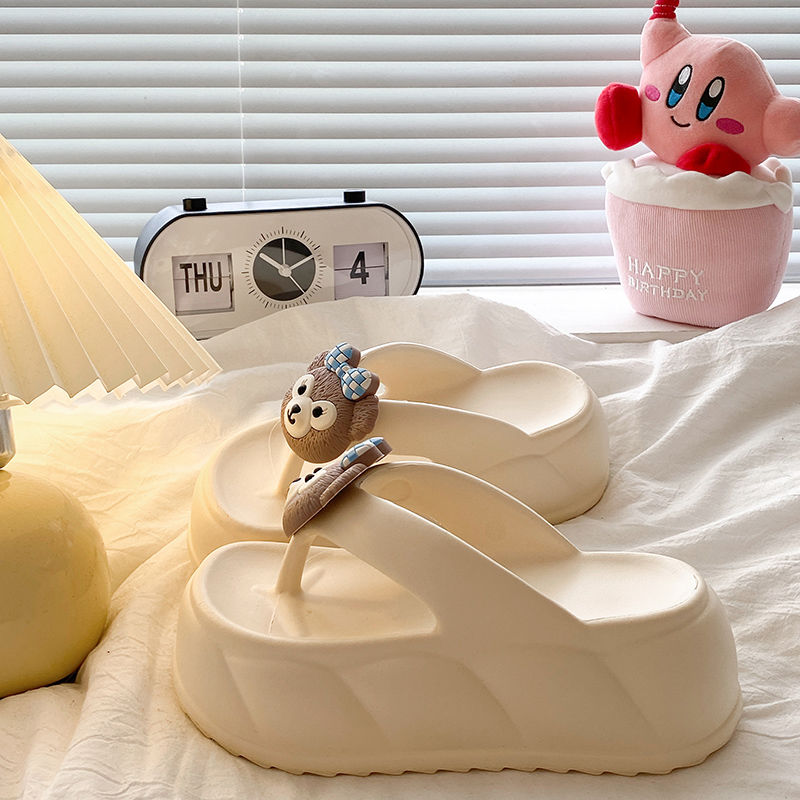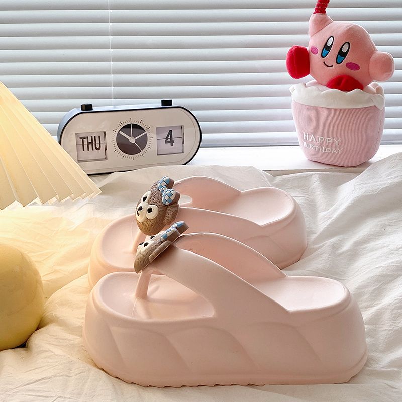 超厚底女达菲熊防滑EVA人字拖鞋海边夏季增高厚底防臭防滑凉拖鞋