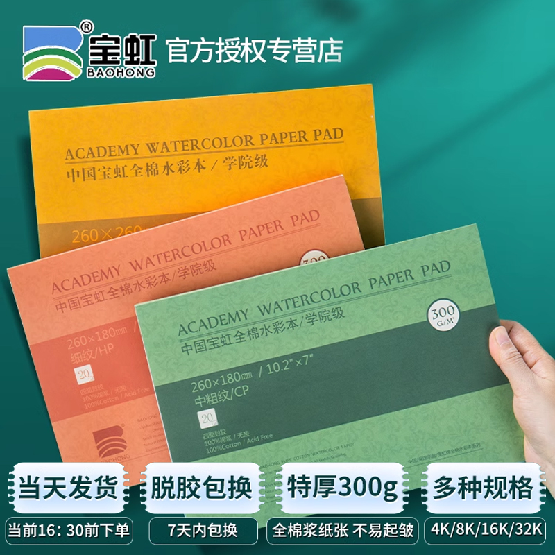 宝虹水彩本纸300g水彩画本4K8K棉浆中粗细纹A3A4水彩纸绘画本水彩画的纸方形水彩本手绘涂鸦美术生专用水彩本