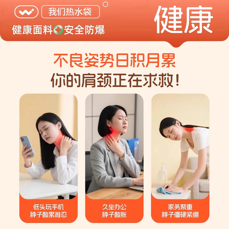 脖子肩颈热水袋注水暖水袋颈椎热敷专用护肩颈部神器U型挂脖防爆