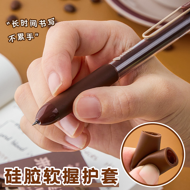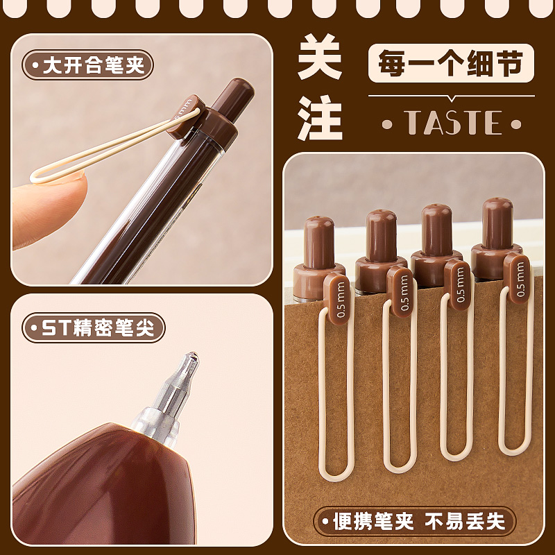 咖啡香薰按动中性笔高颜值ST刷题笔小学生初中生考试专用ins香味速干顺滑黑色水笔碳素笔芯签字笔圆珠笔文具