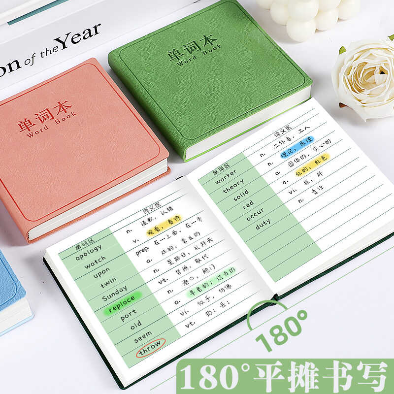 三年二班方形英语单词本艾宾浩斯记忆曲线大学生考研专用四六级日皮面笔记本子高颜值初高中词汇学习记背神器