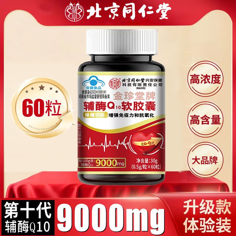 北京同仁堂正品辅酶q10软胶囊国产辅酶蓝帽认证60粒/瓶免疫力健康